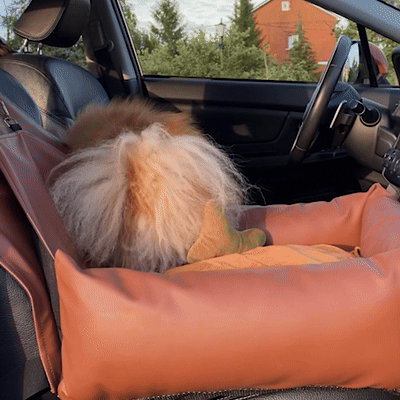 Create a cozy and safe place for your pet in the car with our soft booster seat. And of course, don’t forget to secure a dog safety belt to the loop in the fold!