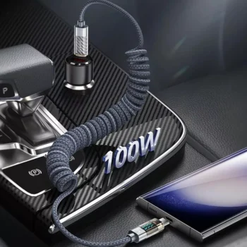 100W USB-C to USB-C Fast Charging Cable with Digital Display & Spring Design
