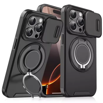 Magnetic Metal Ring Case with Lens Protector for iPhone 15 & 16