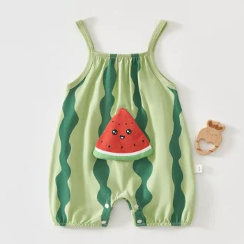 Fruit Print Baby Romper – Sleeveless Cotton Summer Jumpsuit for Newborns