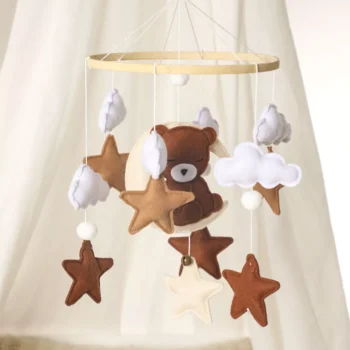 Felt Crib Mobile with Soft Bear, Star & Moon Hanging Toys for Newborn Nursery