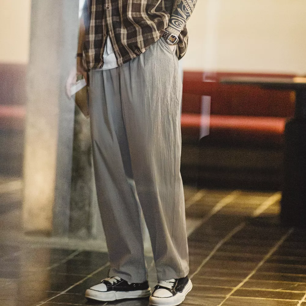 Men’s Seersucker Elastic Waist Casual Chinos – Lightweight Loose Fit Pants