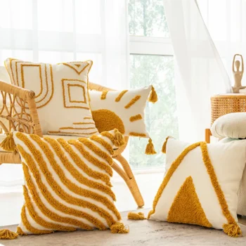 Boho Golden Sun Velvet Throw Pillowcase – Geometric Fringe Cushion Cover