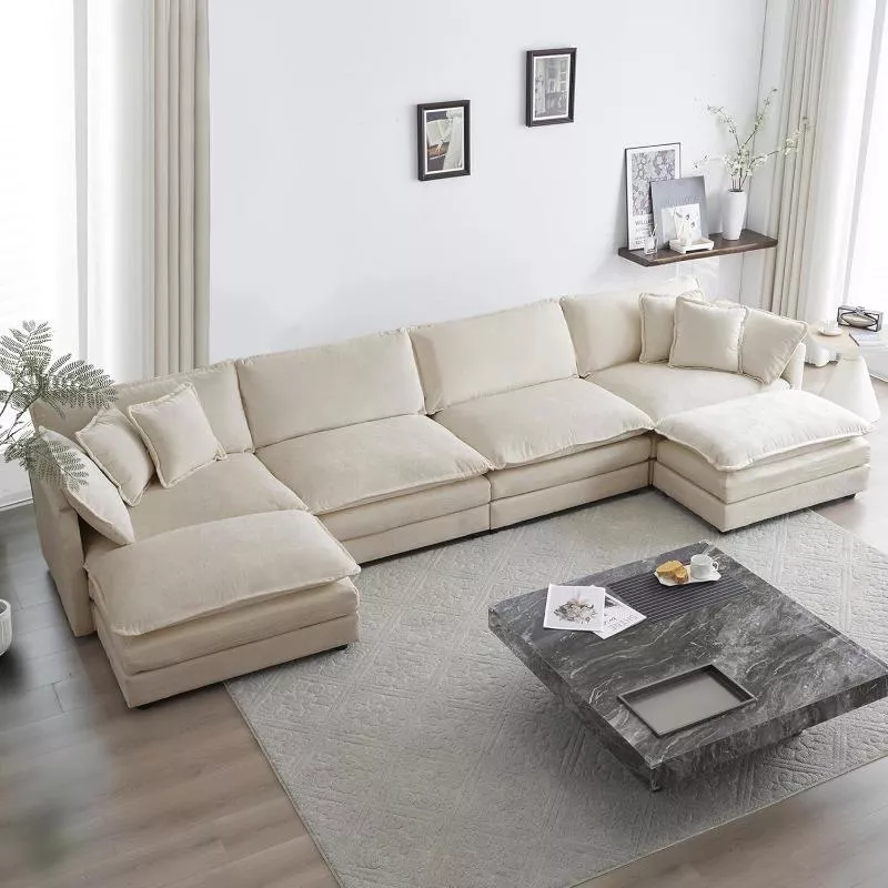 146” Oversized U-Shaped Modular Sectional Sofa – Ultra-Comfortable Deep Seating Couch