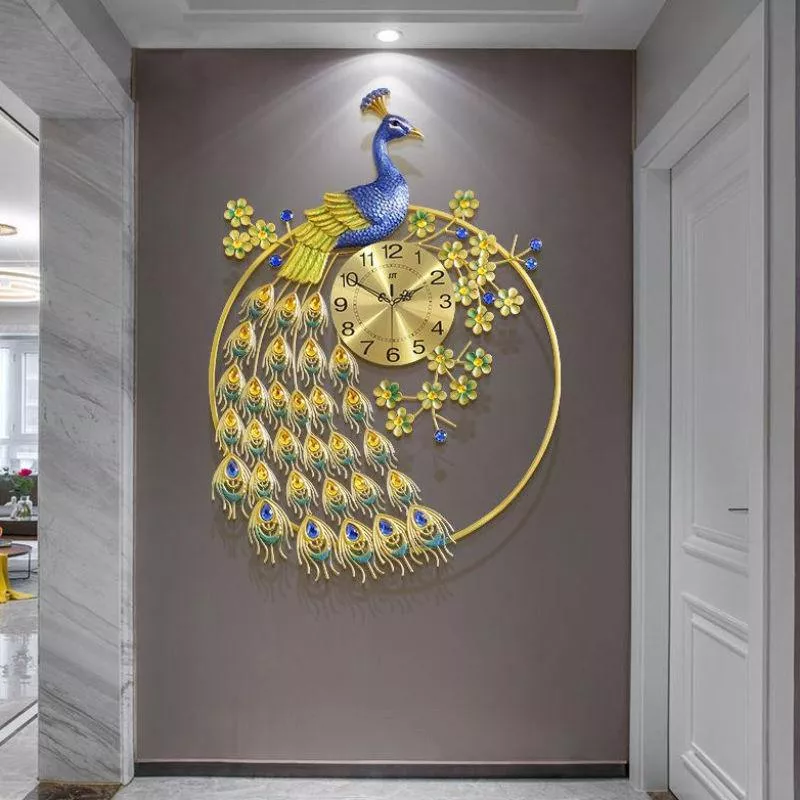Elegant Gold Peacock Hanging Wall Clock – Large Decorative Silent Bird Design