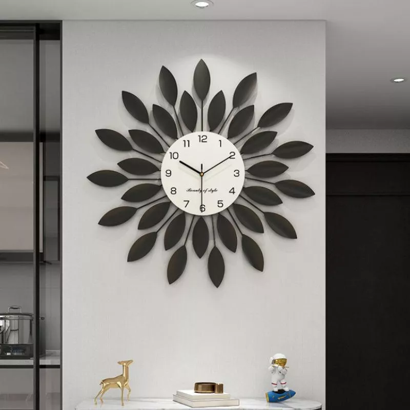 Large Silent Black Wall Clock – Unique Modern Art Decor for Living Room or Kitchen
