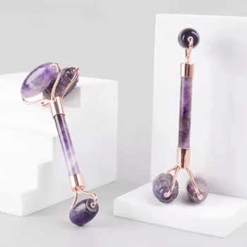 Double Big Roller Amethyst Face Massage Tool for Skin Care & Relaxation