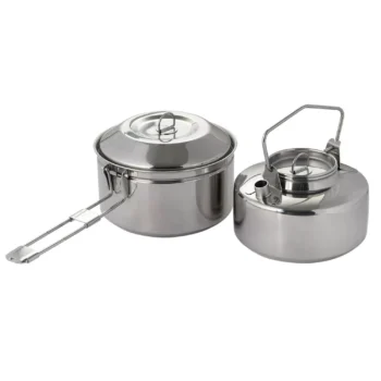 2Pcs Stainless Steel Camping Pot and Kettle Set for Outdoor Cooking 1L Each