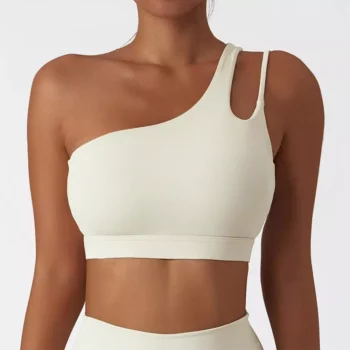One Shoulder Shockproof Yoga Bra – Irregular Strap Sports Crop Top