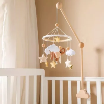 Felt Crib Mobile with Soft Bear, Star & Moon Hanging Toys for Newborn Nursery