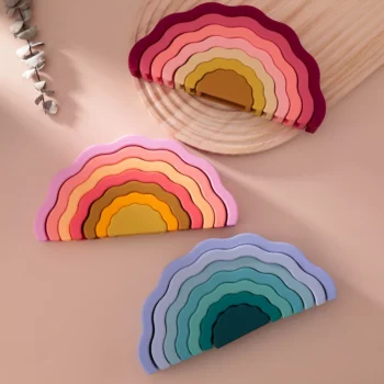 10-Piece Silicone Rainbow Stacking Toy Set – Montessori Sensory Blocks