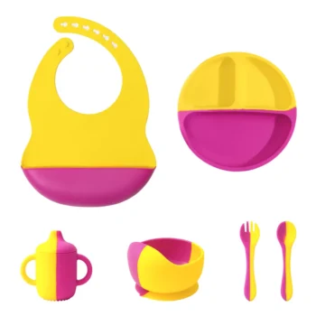 6PCS Silicone Baby Feeding Set with Suction Plate, Bib, Cup & Spoon