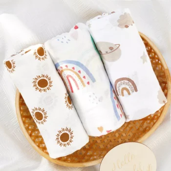 3-Pack Bamboo Cotton Muslin Swaddle Blankets