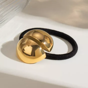 18K Gold Plated Stainless Steel Glossy Hair Ring with Black Rubber Band