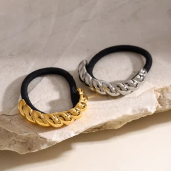 Elegant 18K Gold Plated U-Shaped Hair Clip with Black Rubber Band
