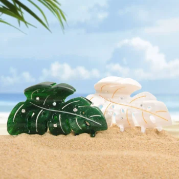 Rhinestone Leaf Turtle Hair Claw Clip – Elegant Acetate Hair Accessory