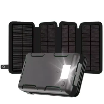 20000mAh Solar Power Bank with 4 Panels & Flashlight – Waterproof & Dual USB