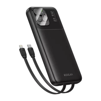 10000mAh Fast Charging Power Bank with Built-in Cables & Digital Display