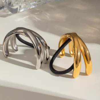 18K Gold Plated Geometric Cross Hair Tie with Black Rubber Band