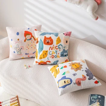 Cute Cartoon Embroidered Animal Throw Pillow Covers for Kids’ Room – 18×18 Inches