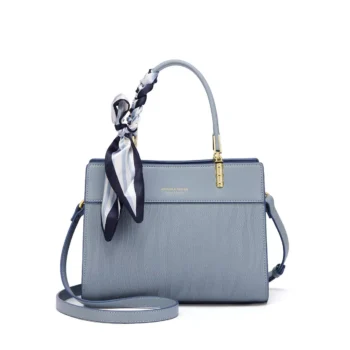 Elegant Blue Leather Tote Bag with Scarf – Large Capacity Shoulder Handbag
