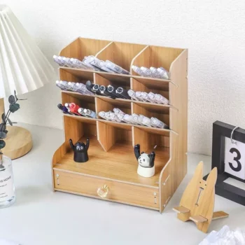 Wooden Desk Organizer Box for Office, School & Home with Large-Capacity Storage