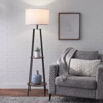 Etagere Matte Black Floor Lamp with Integrated Shelves