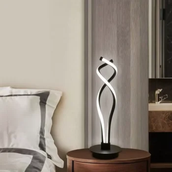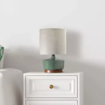 Elegant Mid-Century Modern Ceramic & Wood Table Lamp, 17″