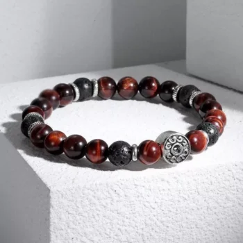 Red Tiger Eye & Black Lava Beaded Stretch Bracelet