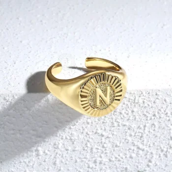 Gold Color Chunky Initial Open Ring