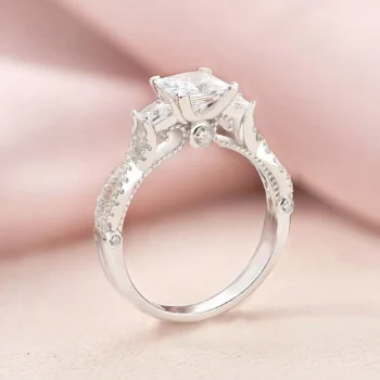 Elegant 925 Sterling Silver Princess Cut Engagement Ring Set