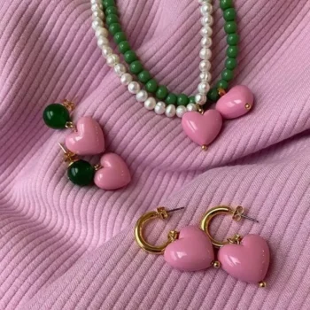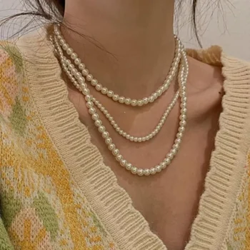 Chic Double Layer Pearl and Metal Necklace with Colorful Love Pendant