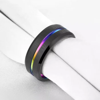 Tungsten Carbide 8mm Black Wedding Band with Rainbow Groove