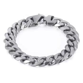 Stylish Matte Silver 15mm Stainless Steel Cuban Link Bracelet for Men