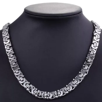 11mm Stainless Steel Flat Byzantine Link Chain Necklace
