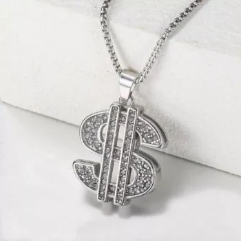Stylish Gold & Silver CZ Dollar Symbol Pendant Necklace
