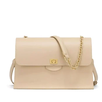 White Leather Crossbody Shoulder Bag for Women with Metal Strap – Trendy & Chic