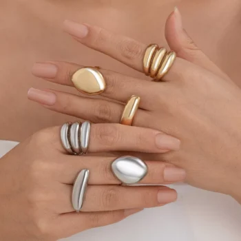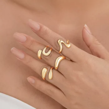 3-Piece Water Drop Gold & Silver Rings Set for Women