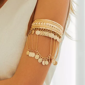 Boho Multilayer Tassel Coin Upper Arm Cuff Bracelet for Women