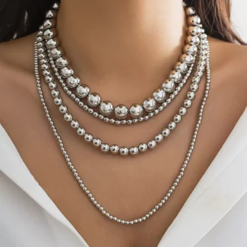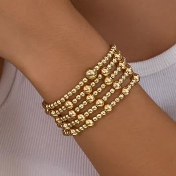 7-Piece Silver Beaded Stretch Bracelet Set for Women