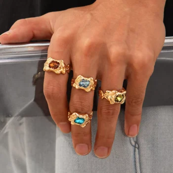 4-Piece Vintage Gold Crystal Adjustable Rings Set for Men & Couples