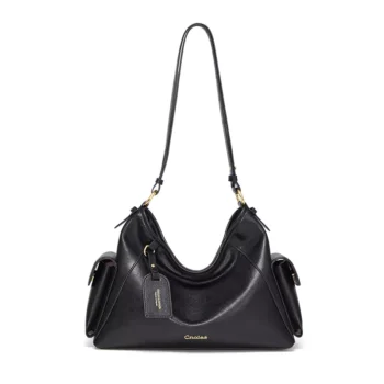 Elegant Leather Shoulder Handbag with Dual Side Pockets