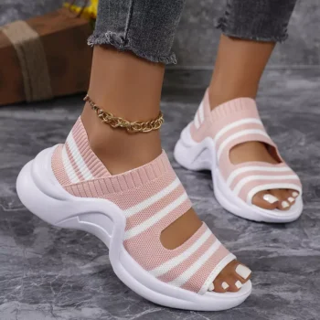 Women’s Striped Knitted Wedge Sandals – Breathable, Comfy, Stylish