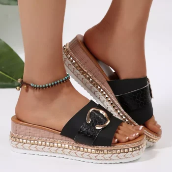 Chunky Heel Platform Sandals for Women with Covered Toe and Hollow Out Design