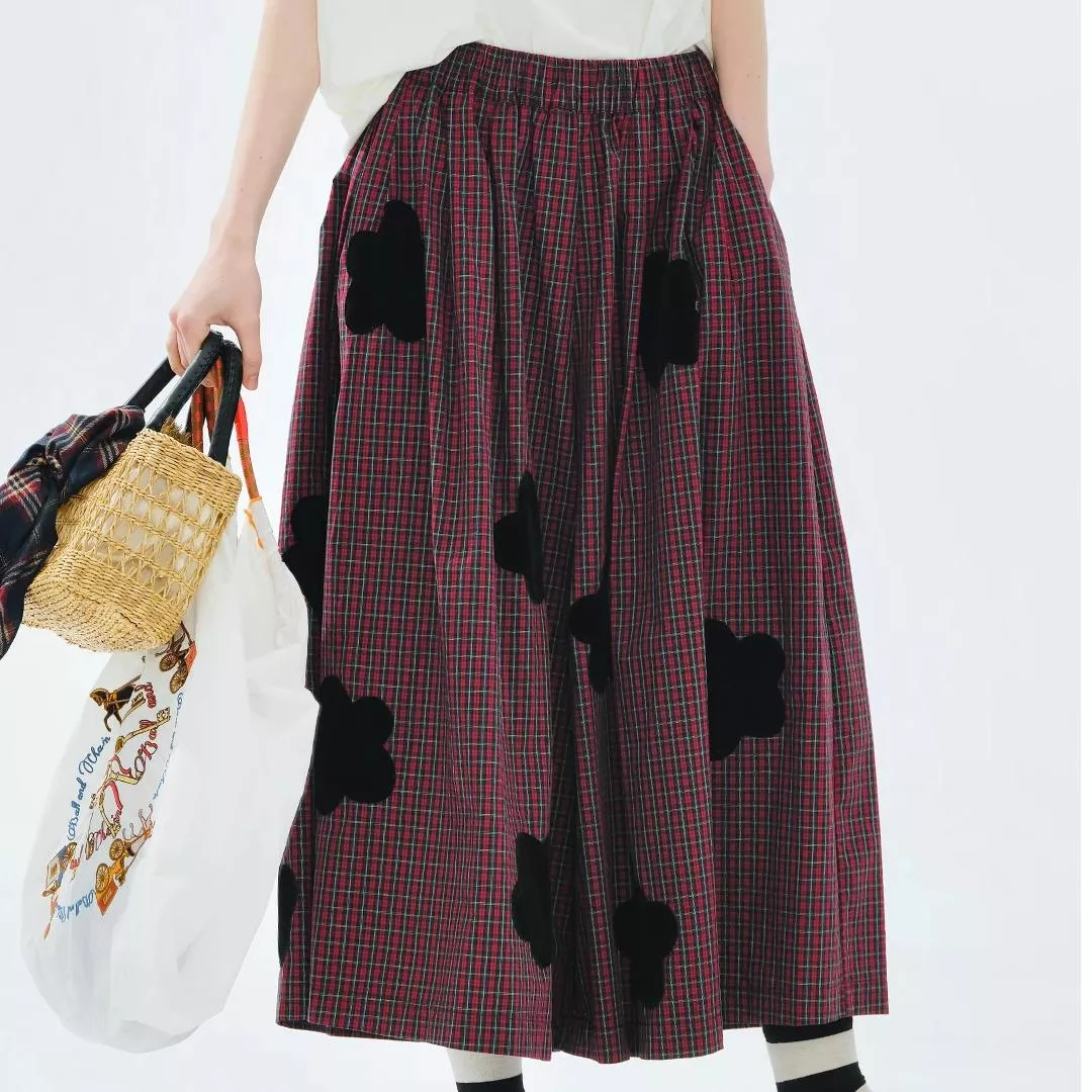 Summer Washed Plaid Cotton A-Line Skirt with Pockets