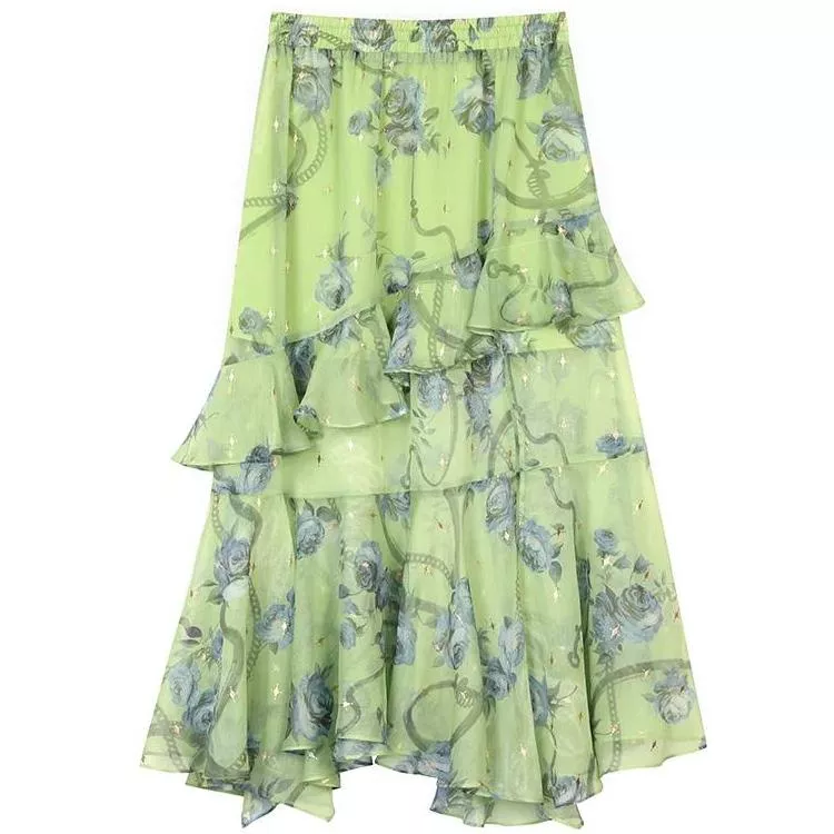 Rose Print Ruffled Chiffon High Waisted Skirt – Y2K Summer Chic